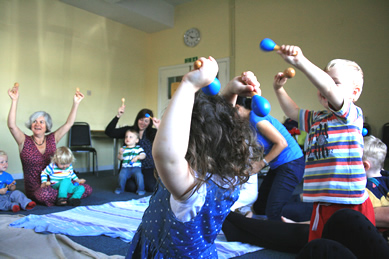 The sessions at Miranda's Mini Maestros always start with an unstructured time for little ones to explore and play with a range of instruments and for adults to play with them or chat to each other over a cup of tea or coffee.